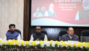 देशातुन क्षयरोगाच समुच्य निर्मुलन करण्यासाठी केंद्र सरकारच्या वतीने विशेष टि.बी. मुक्त अभियान देशभर राबविण्यात येत आहे. याच अभियानाच्या संदर्भांत चर्चा करण्यासाठी महाराष्ट्रातील खासदारांची बैठक दिनांक 3 डिसेंबर 2025 रोजी दिल्ली येथे आयोजित करण्यात आली होती. यावेळी मार्गदर्शन करतांना केंद्रीय आरोग्य मंत्री जे.पी.नड्डा बोलत होते. ते पुढे म्हणाले की, 2015 नंतर टि.बी.च्या रुग्णसंख्येत 21% आणि मृत्युदरात 25% घट झाली आहे. ही भारताच्या आरोग्य विभागाची मोठी उपलब्धी आहे. यावेळी व्यासपीठावर केंद्रीय आयुष आरोग्य व कुटूंब कल्याण राज्यमंत्री प्रतापराव जाधव, नागरी हवाई उड्डयन मंत्री मुरलीधर मोहळ उपस्थित होते. पंतप्रधान नरेंद्र मोदी यांनी भारत देश क्षयरोग मुक्त (टि.बी.मुक्त) करण्याचा निर्णय घेतला आहे. या निर्णयाची प्रभावी अमलबजावणी महाराष्ट्रात सुध्दा व्हावी या दृष्टिकोनातन या बैठकीच आयोजन करण्यात आले होते. या बैठकीला केंद्रीय आयुष, आरोग्य व कुटूंब कल्याण राज्यमंत्री प्रतापराव जाधव यांनी सुध्दा मार्गदर्शन केले. ते म्हणाले की, टि.बी.मुक्त अभियानाला गती देण्यासाठी लोकप्रतिनीधींचा सहभाग महत्वपुर्ण आहे. प्रत्येक लोकप्रतिनीधीनीही त्यांच्या मतदार संघामध्ये आढावा घेऊन या अभियानाला गती देण्याचे काम केल्यास पंतपंधान नरेंद्र मोदी यांच्या संकल्पनेतील टि.बी.मुक्त भारत होण्यास वेळ लागणार नाही. पंतप्रधान नरेंद्र मोदी यांचे टि.बी.मुक्त भारत देश हे स्वप्न साकार करण्यासाठी आपण सर्वांनी या अभियानांत सहभागी होऊया असे आवाहन केंद्रीय आयुष, आरोग्य व कुटूंब कल्याण राज्यमंत्री प्रतापराव जाधव यांनी याप्रसंगी केले. या बैठकीला उपस्थित असलेल्या महाराष्ट्रातील खासदारांनी या अभियाना संदर्भांत सकारात्मक चर्चा केली. हे अभियांन यशस्वी करण्याचा संकल्पही केला. या बैठकीला विविध राजकिय पक्षाचे खासदार उपस्थित होते.